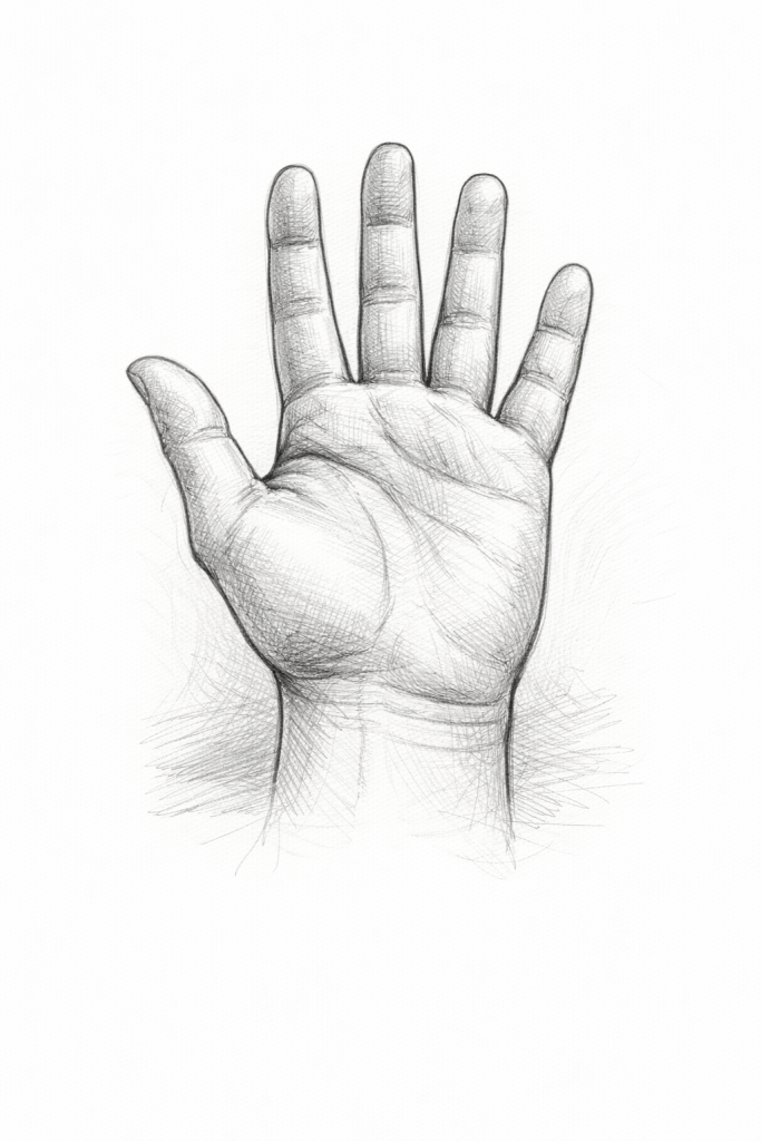 Divide la mano en formas básicas (bloques y cilindros) antes de hacer detalles.